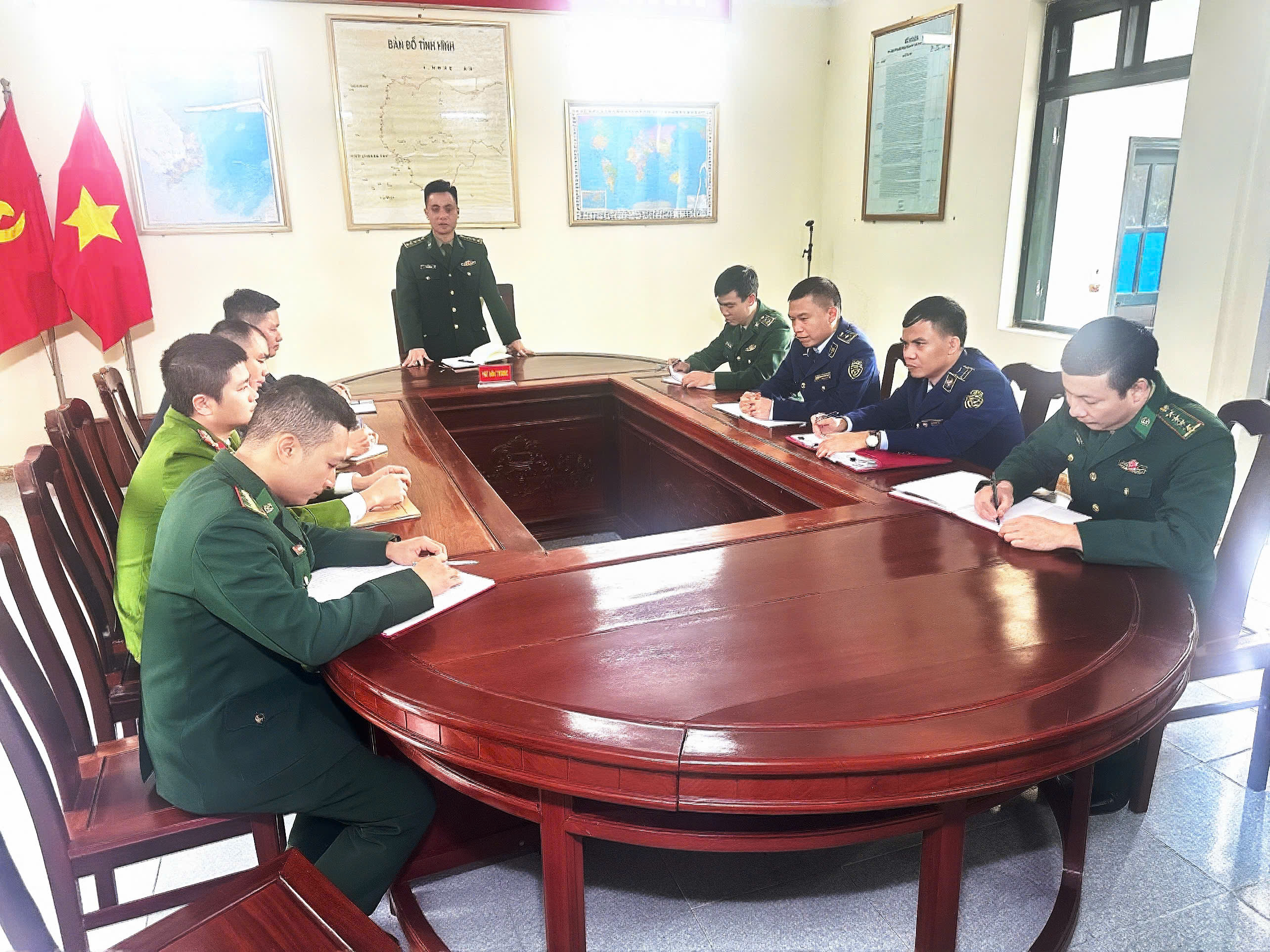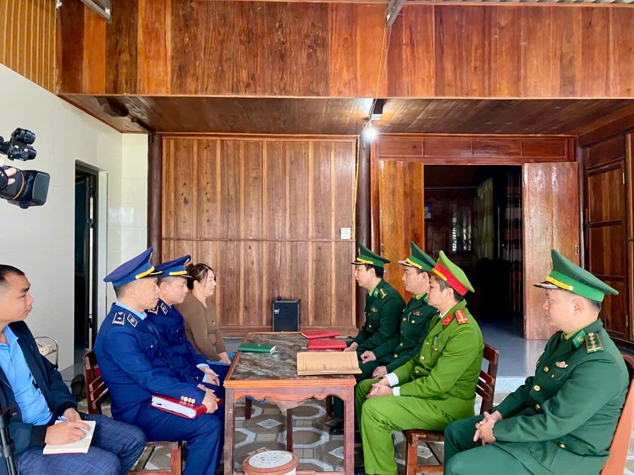 Buổi làm việc liên ngành giữa QLTT - Đồn Biên phòng - Công an xã và đại diện chính quyền địa phương nhằm tăng cường công tác quản lý địa bàn, ngăn chặn các vi phạm thương mại tại khu vực biên giới (Ảnh: T.L)