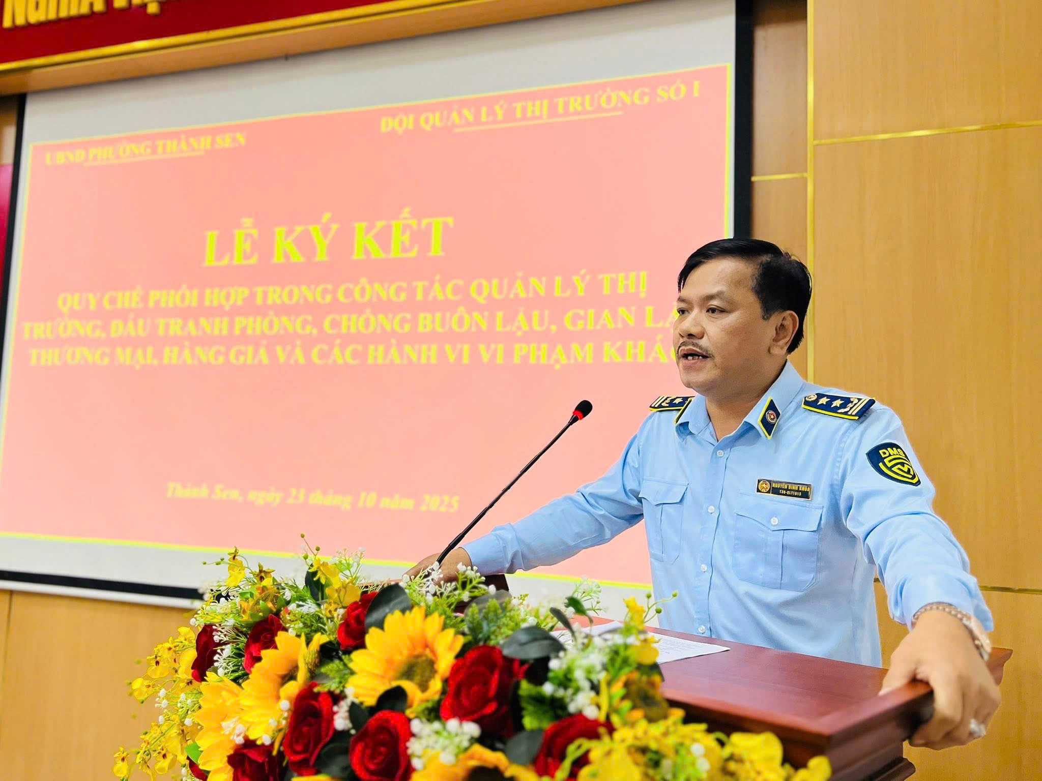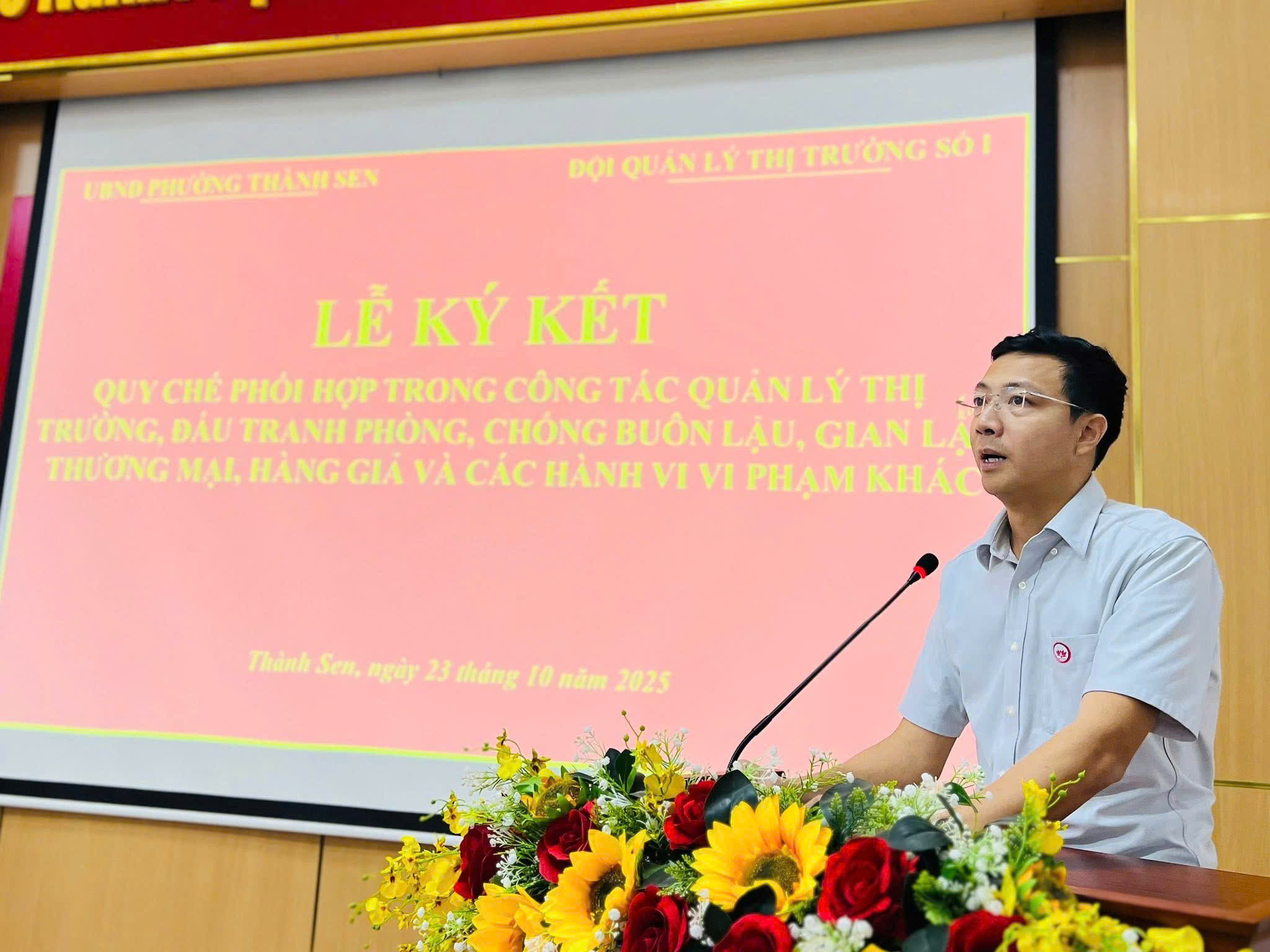 Chiều ngày 23/10/2025, tại trụ sở UBND phường Thành Sen, Đội QLTT số 1, Chi cục QLTT tỉnh Hà Tĩnh và UBND phường Thành Sen tổ chức Lễ ký kết Quy chế phối hợp trong công tác QLTT, phòng chống buôn lậu, gian lận thương mại, hàng giả và các hành vi vi phạm khác.