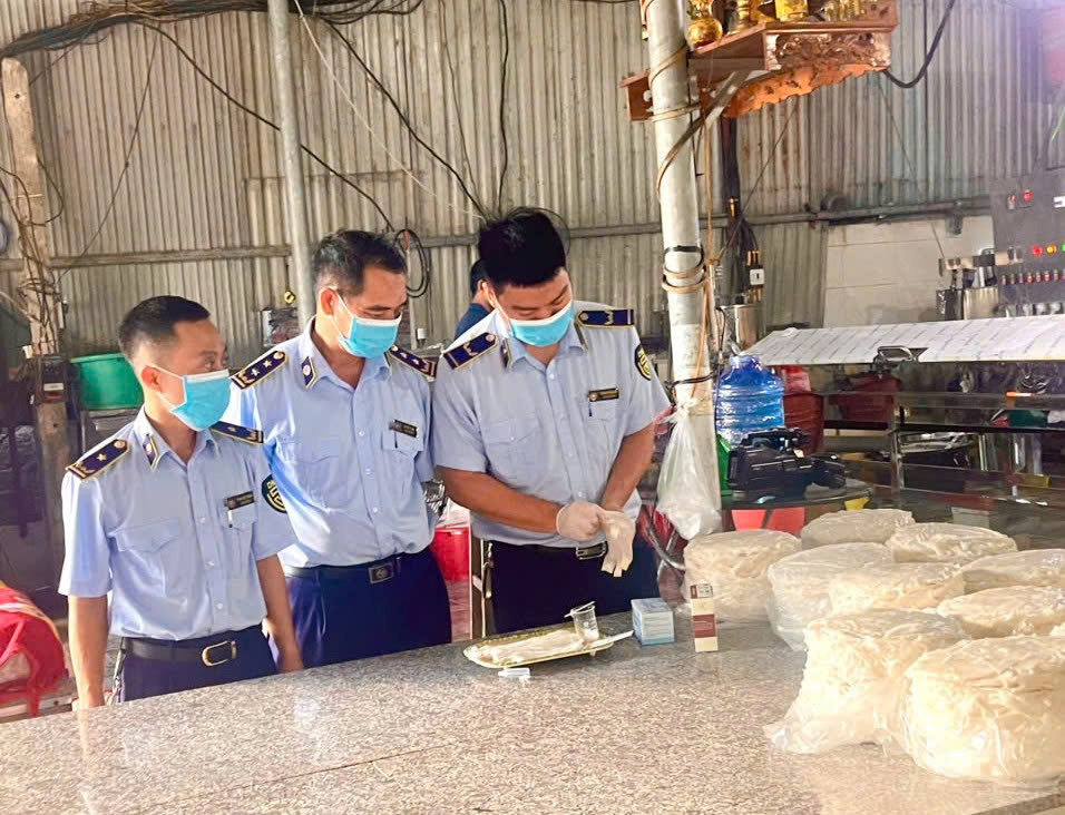 Đội Quản lý thị trường số 1: Test nhanh các sản phẩm bún, phở, bánh mướt, giò, xúc xích.