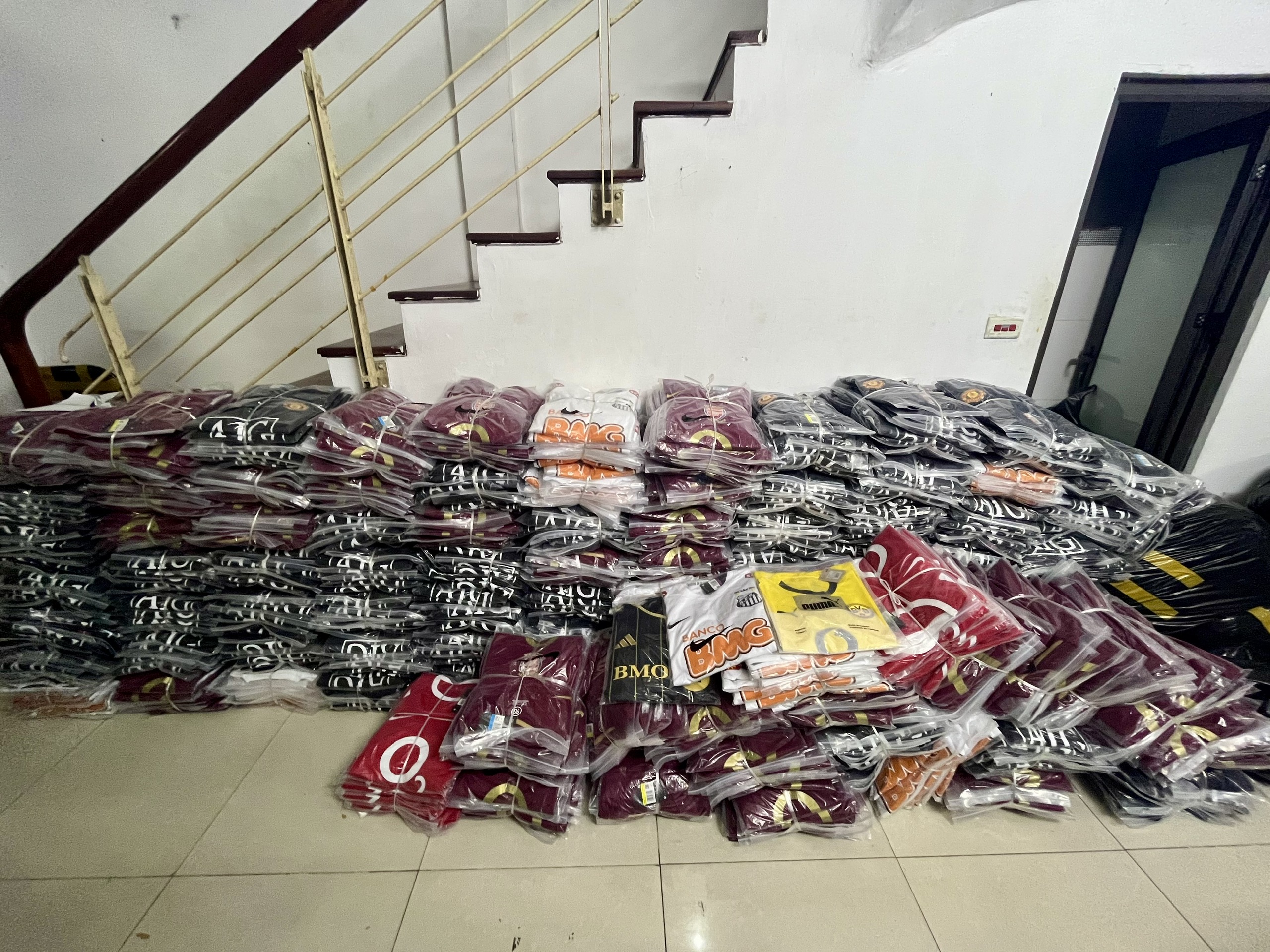 Kiểm tra hàng hóa, lực lượng chức năng ghi nhận: 5.200 bộ quần áo thể thao gắn nhãn hiệu Nike, 1.200 bộ gắn nhãn hiệu Adidas, 14 áo thể thao mang nhãn hiệu Puma. Phần lớn số hàng này được kinh doanh trên các nền tảng thương mại điện tử. Tuy nhiên, đại diện cơ sở không xuất trình được hóa đơn, chứng từ chứng minh nguồn gốc. Các chi tiết in, thêu, bao bì… cho thấy nhiều dấu hiệu không đúng quy cách của hàng chính hãng. Đoàn kiểm tra bước đầu xác định số hàng hóa có dấu hiệu giả mạo nhãn hiệu theo Luật Sở hữu trí tuệ. Ngoài ra, cơ sở cũng không niêm yết giá theo quy định của Luật Giá 2023.